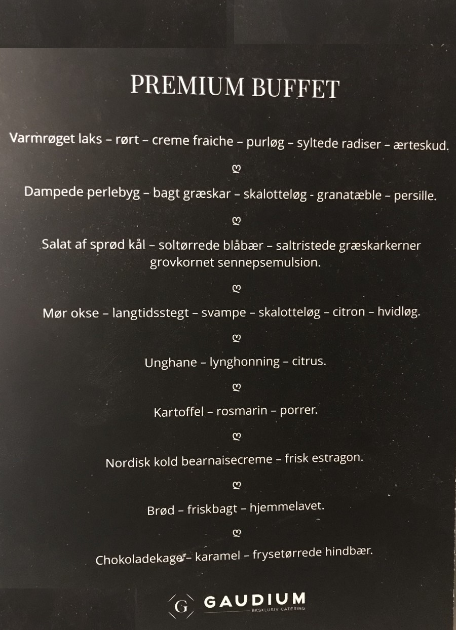 Buffeten var sat op inde i huset, hvor gæsterne fra deres pladser udenfor kunne gå ind og vælge hvad de ville have at spise.